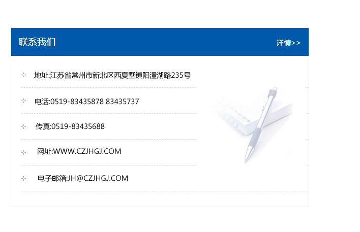 傳真:0519-83435688    郵編:213135    網址:WWW.czjhgj_com.andelukjg.com    電子郵箱:JH@czjhgj_com.andelukjg.com